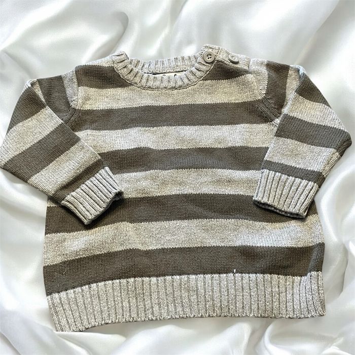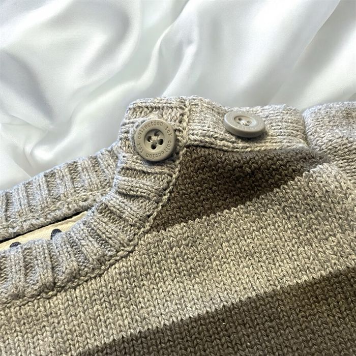 👕 Tex : rayé gris, doux et confortable, avec boutons à l’épaule pour un habillage facile.