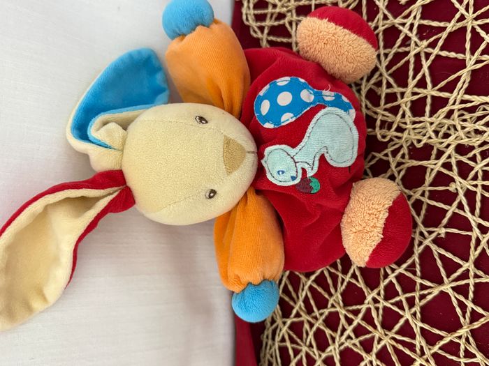 Doudou boule lapin KALOO écureuil rouge orange bleu - photo numéro 6
