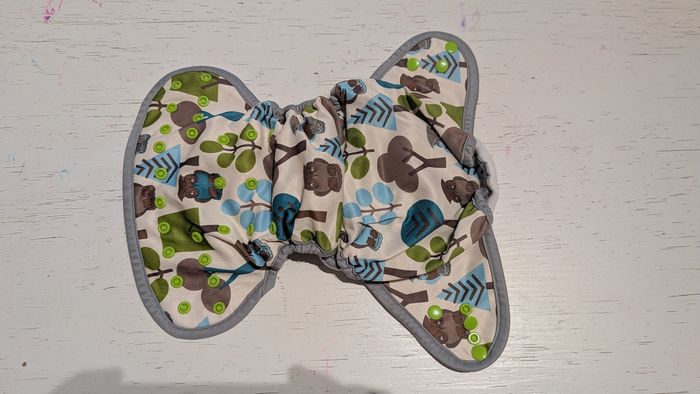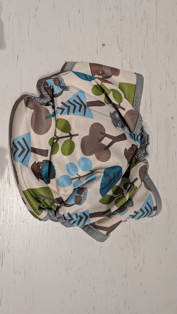 Couche lavable TE2 avec insert intégré motif hibou et arbres sans marque apparente.