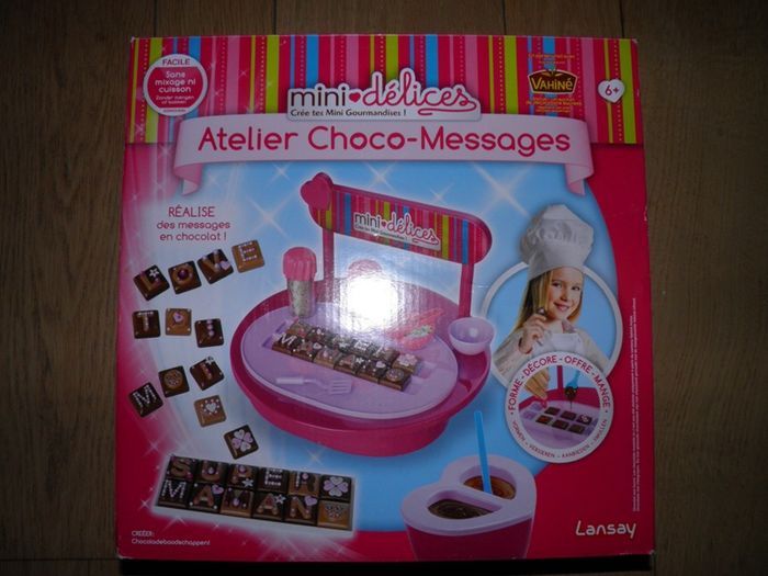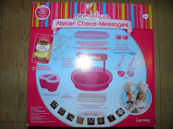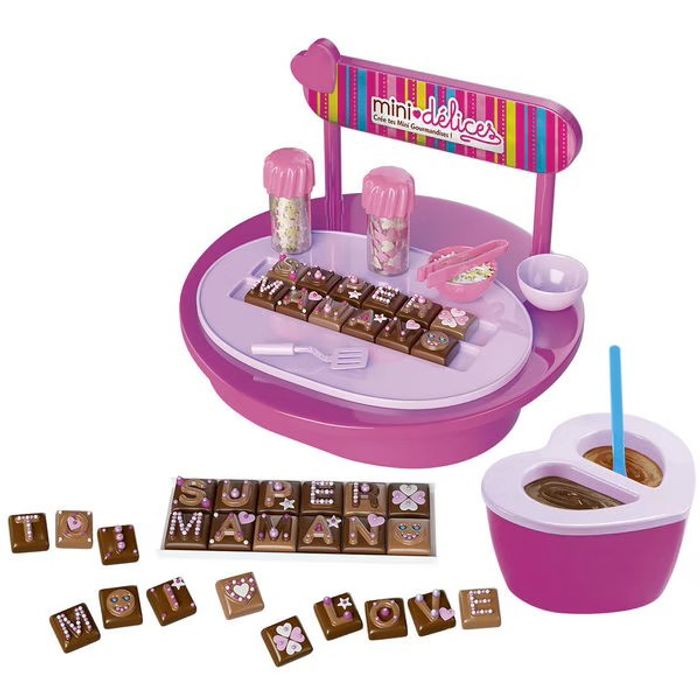 Votre enfant va pouvoir réaliser des mini-créations gourmandes au chocolat, colorées et faciles à réaliser : pas besoin de mixage ni de cuisson. Il pourra créer une multitude de messages pour les offrir à sa famille ou à ses amis en les mettant dans les emballages inclus !