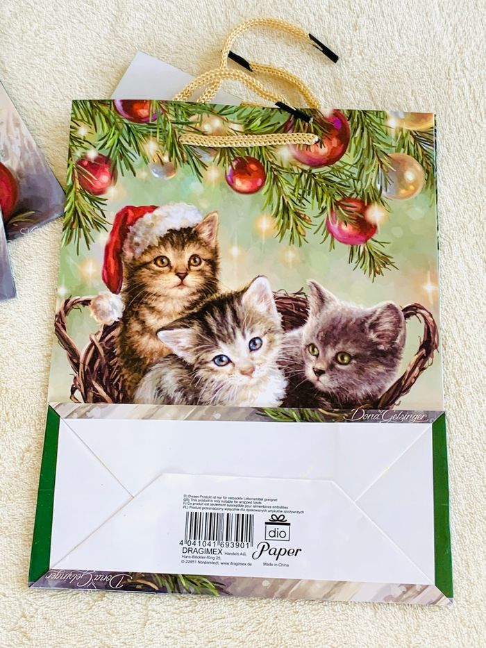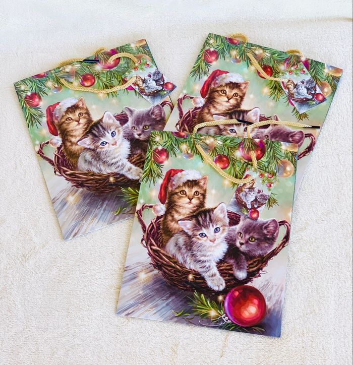 Lot de 3 petites pochettes 3 chats Noel Vitrine Magique