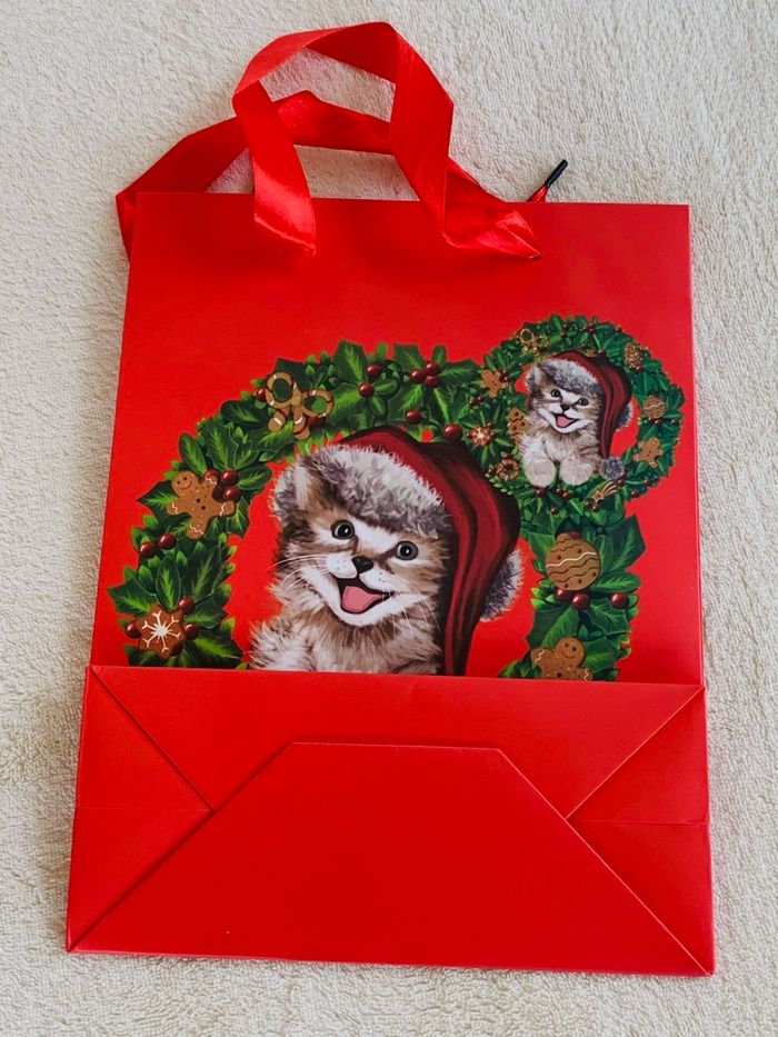 Lot de 3 pochettes rouges chats Noel Vitrine Magique,