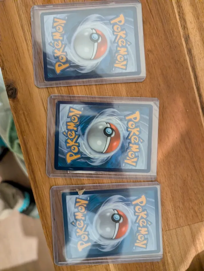 Possibilité d’avoir d’autres photos plus détaillées sur demande (si vous voyez des poussières ou autre ce sont les sleeves / toploader mais l’état des cartes est nickel). Les cartes sont en état neuves, sorties de booster (near mint). Elles sont protégées d’une sleeve et d’un toploader et seront vendue avec leurs protections.