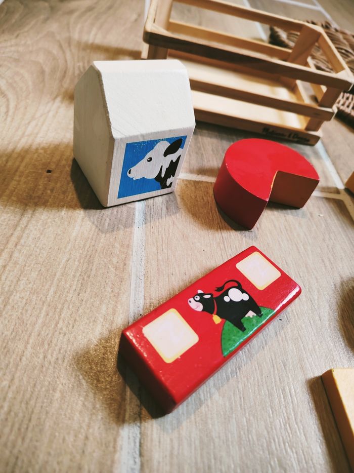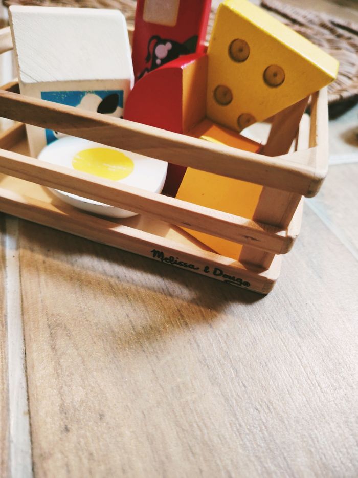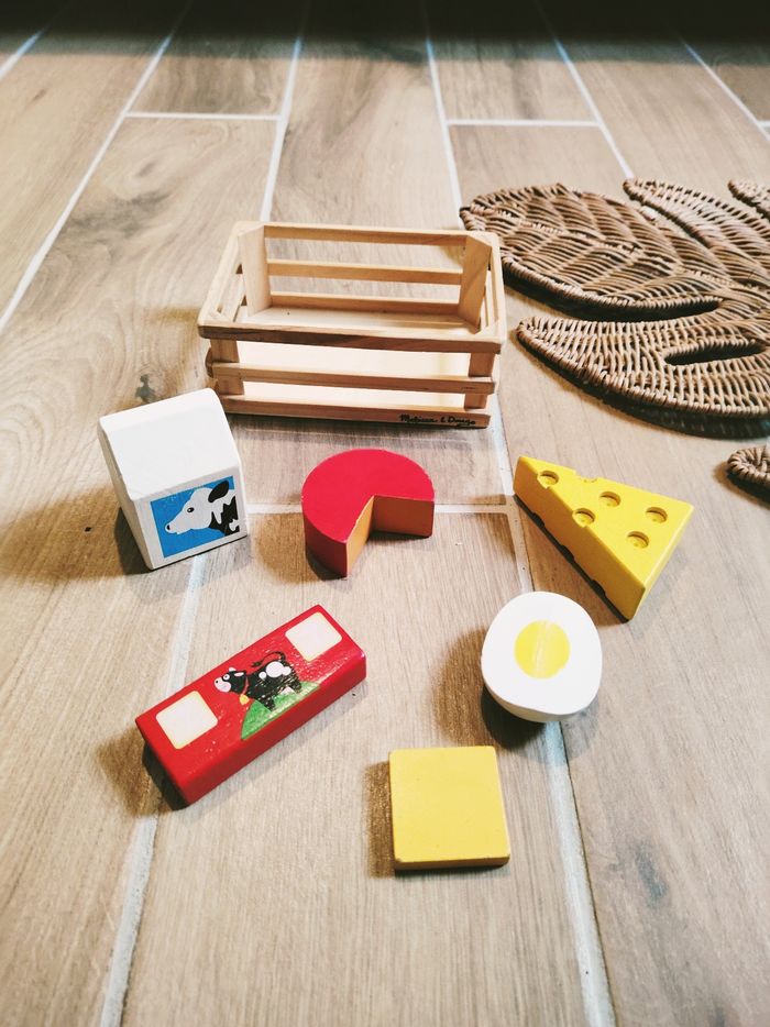 🧀Dinette en bois cagette avec divers produits laitiers marque Melissa et Doug JB656