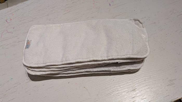 Les inserts étaient trempé dans un bain de percarbonate une fois par mois. Certains inserts sont plus rèches que d'autres dù fait d'utilisation plus fréquente.