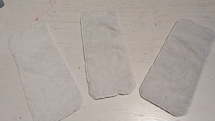 Les inserts étaient stockés dans un seau d'eau, un cycle de rinçage, puis un cycle de lavage à 60 degrés et un nouveau cycle de rinçage. Les inserts sont rèches du fait d'une utilisation fréquente