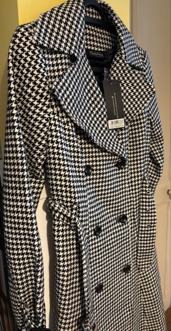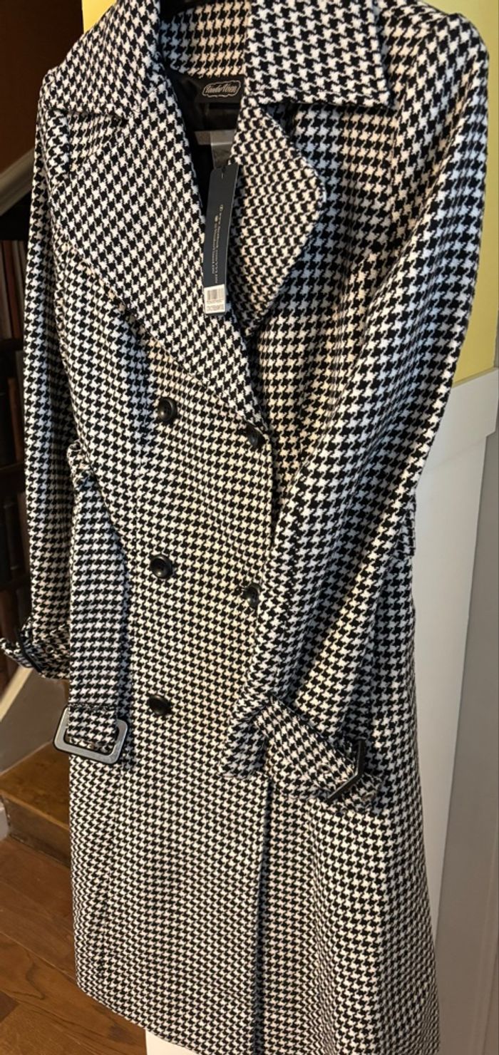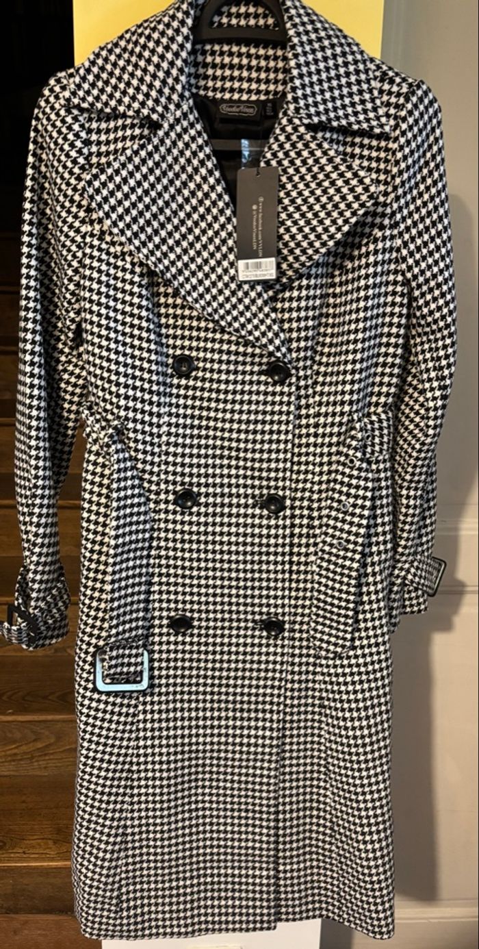 Manteau trench pied-de-poule M neuf élégant vintage