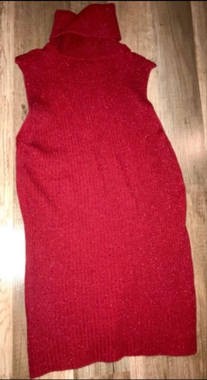 Pull sans manche avec col roulé couleur rouge avec paillette taille s