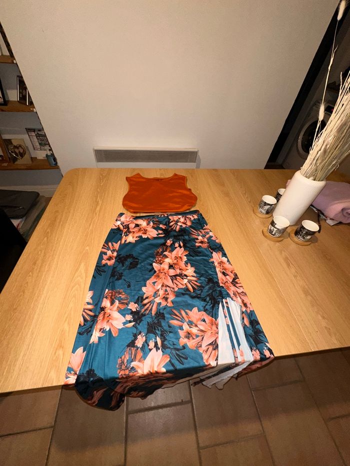 Ensemble deux pièces fleuri jupe longue fendue & crop top