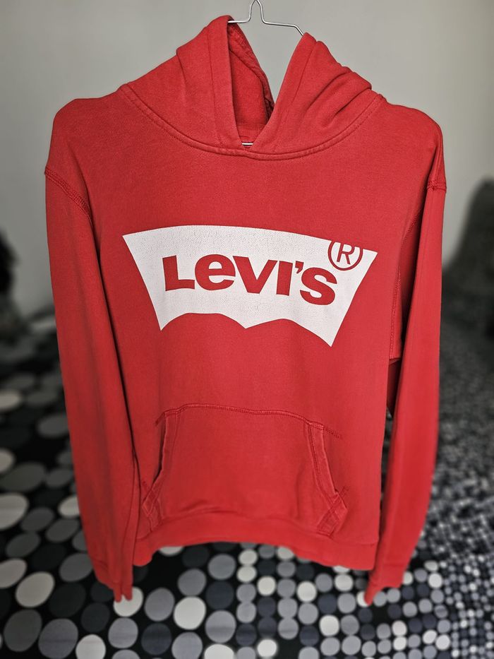 Sweat à capuche Levi’s original pour enfant / ado, coloris rouge avec logo blanc iconique sur le devant.