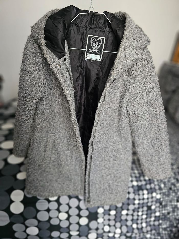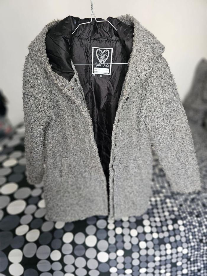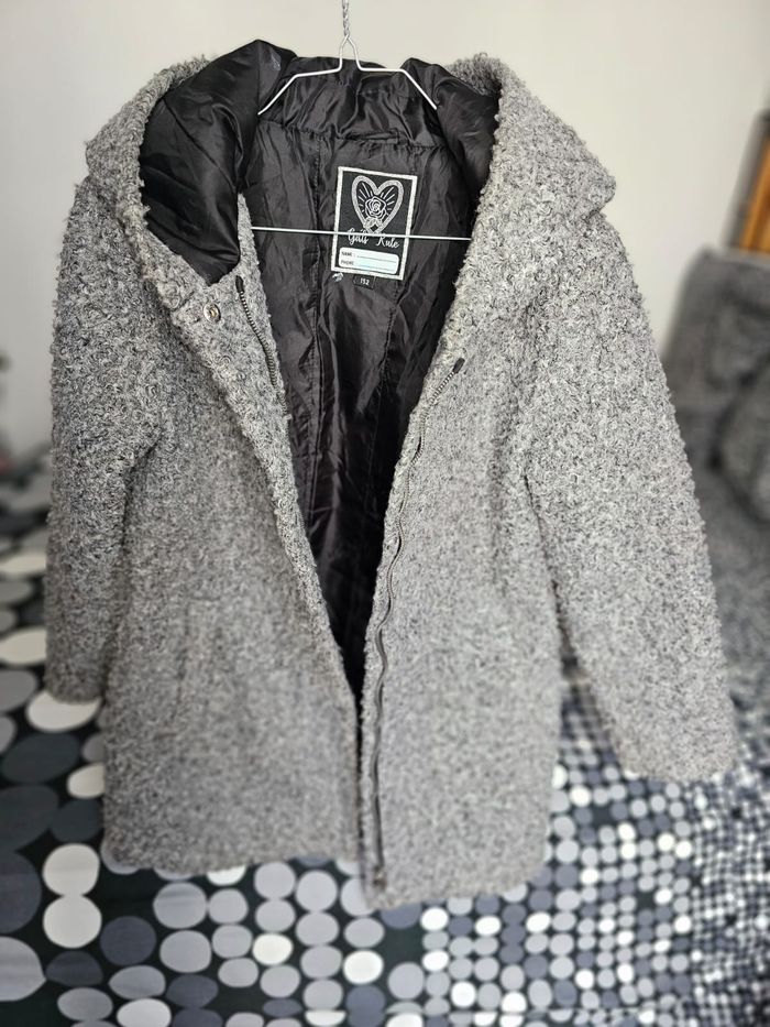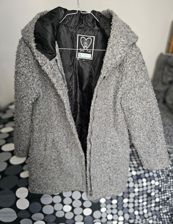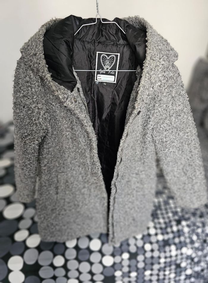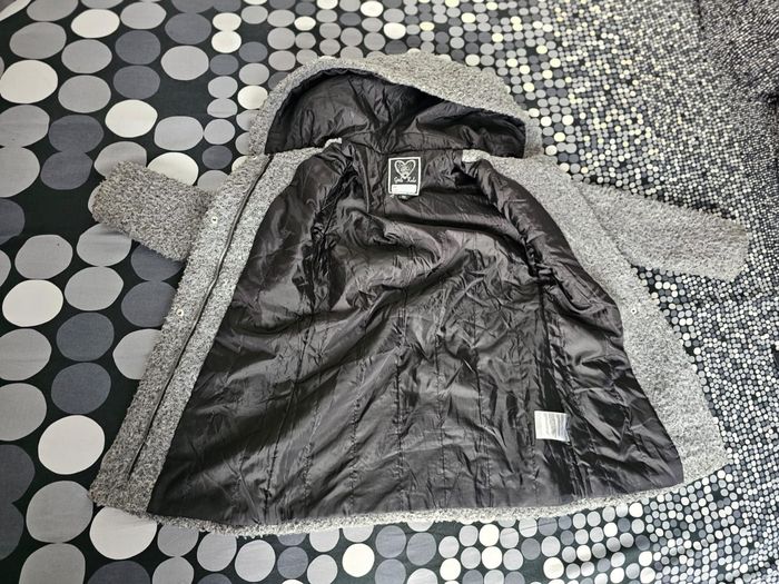 Manteau Girls Rule pour fille, coloris gris chiné, matière effet bouclette très douce et chaude.