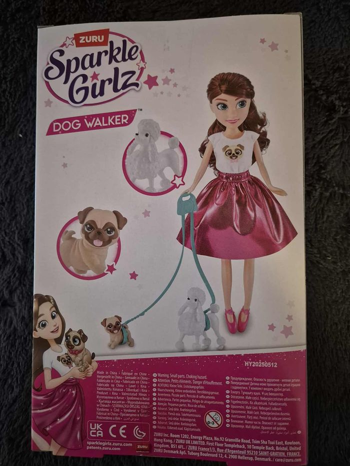 Bonjour, Rencontre la promeneuse de chiens Sparkle Girl ! Elle adore les animaux et vient d’adopter deux nouveaux chiots ! Aide-la à les promener en utilisant la laisse colorée et flexible incluse dans le coffret. La poupée Sparkle Girlz comprend une tenue entièrement amovible, également interchangeable avec les autres poupées Sparkle Girlz. Article neuf Envoi sous 48h-72h