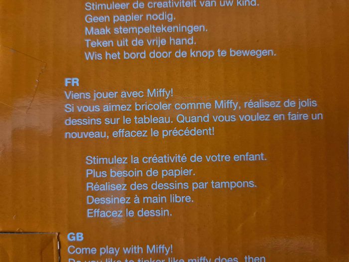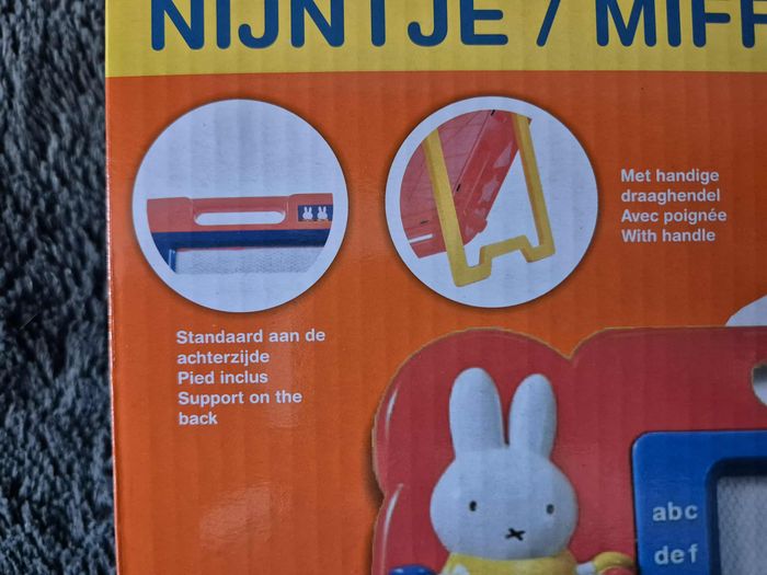 Planche à dessin magnétique Miffy avec stylo et 3 tampons de différentes formes. Un beau dessin sans se salir les doigts ! Et si vous voulez faire un nouveau dessin, il suffit de le nettoyer à nouveau en déplaçant le bouton d'avant en arrière. Emballé dans une boîte colourée. Convient aux enfants à partir de 36 mois.
