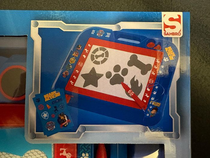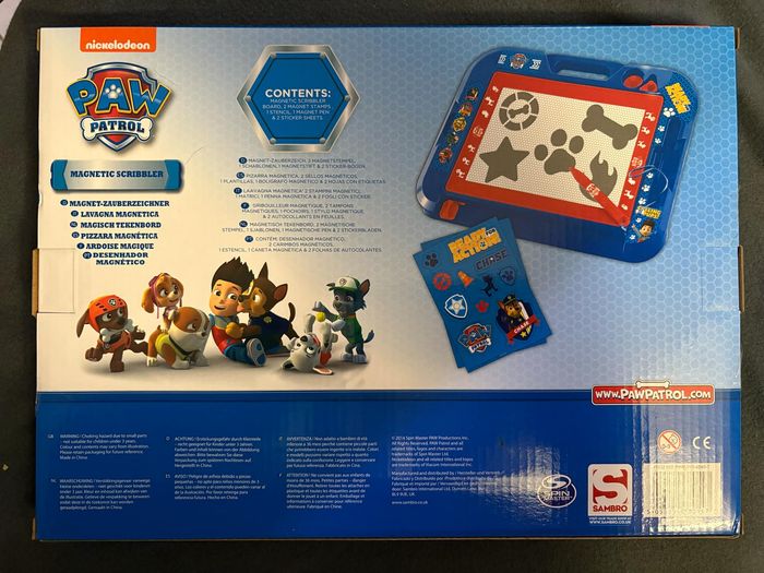 • Une grande ardoise magique à l'effigie de Ryder et des chiots de la Pat' Patrouille ! • L'enfant peut dessiner à volonté à l'aide du stylo mais aussi agrémenter son dessin de jolis tampons et donner libre cours à son imagination. • Il peut ensuite effacer son dessin en un clin d'œil grâce à la réglette à déplacer en bas de l'ardoise. • L'astucieuse poignée de transport lui permettra d'emmener son ardoise partout avec lui.