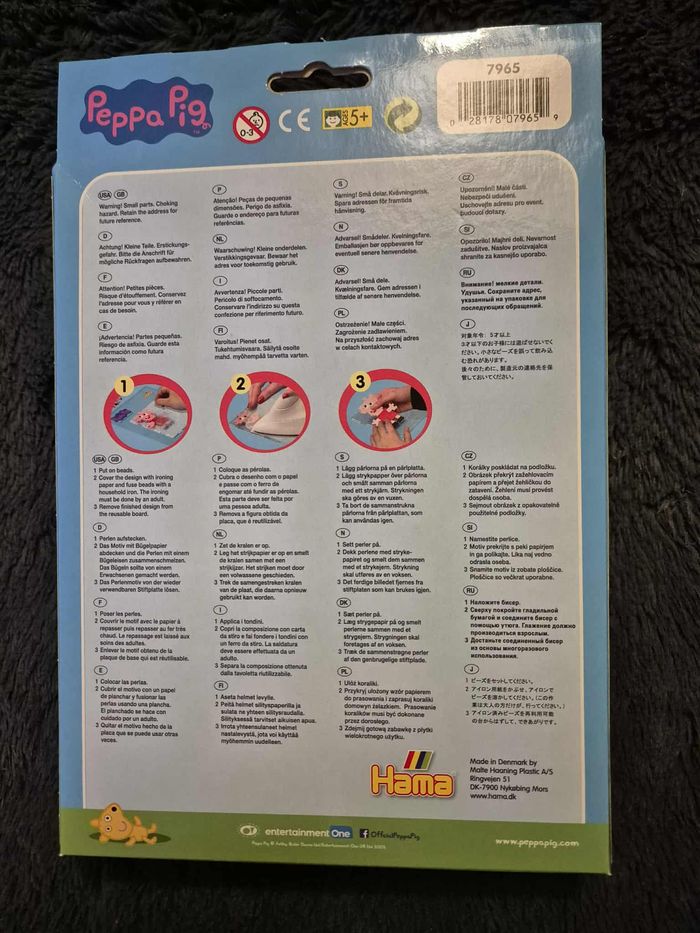 Avec ce petit coffret, les enfants pourront reproduire leurs personnages préférés de Peppa Pig ! Composée d'environ 2000 perles Hama Midi et d?1 grande plaque carrée, cette boîte cadeau garanti de grands moments de plaisirs ! Retrouvez également des modèles en couleurs, du papier à repasser et le mode d?emploi. Pour jouer, rien de plus simple : 1) Poser les perles sur la plaque. 2) Couvrir le motif avec le papier à repasser puis repasser au fer très chaud sans vapeur. Le repassage est laissé aux soins des adultes. 3) Enlever le motif obtenu de la plaque de base qui est réutilisable. .