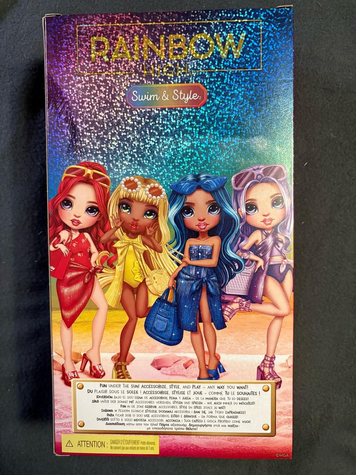 Laissez briller vos vraies couleurs ! Tout comme l'arc-en-ciel, la marque Rainbow High est une marque de jouets unique en son genre qui inspire les enfants à être uniques en leur genre. Cette ligne de poupées mannequins colorées, différentes et inclusives encourage les enfants à être créatifs dans leurs histoires, leur art et leur personnalité, tout en restant fidèles à ce qu'ils veulent être. REGARDEZ SUR YOUTUBE & NETFLIX : Regardez la série animée sur YouTube et Netflix ! Il suffit de chercher "Rainbow High Dolls". SWIM & STYLE : Collectionnez et jouez avec Suny , Sunny, Skyler et Violet.