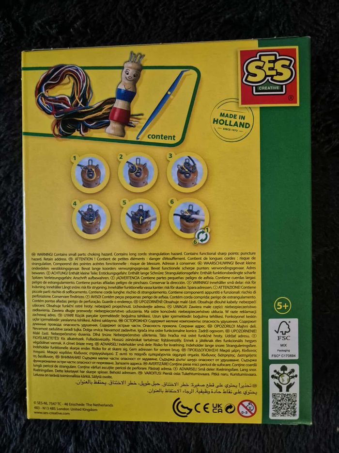 Véritable tricotin - fils de diverses couleurs inclus. SES est le spécialiste des jouets créatifs depuis plus de 40 ans. Le développement de l'enfant est le concept central du développement de nos produits. Il est important que l'enfant ait la possibilité de développer ses talents et d'utiliser sa créativité en toute sécurité. Les produits que nous développons sont essentiels pour les différents stades de développement de tout enfant, apportant créativité, qualité et sécurité.