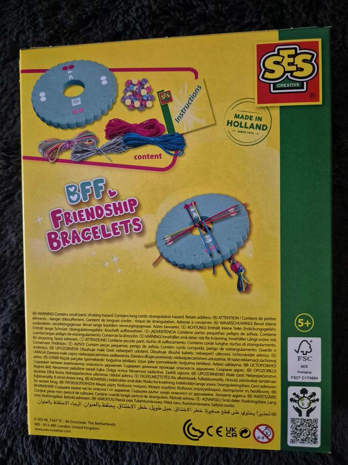 Avec ce set, tu fabriqueras tes propres bracelets d'amitié avec du fil de fer et des perles de poney de différentes couleurs. Fais-en un pour ta meilleure amie ou ton petit ami et montre que vous êtes BFF. Tu peux aussi en faire plusieurs pour toi-même ou pour tout ton groupe d'amis ! Grâce à la roue pratique, il est très facile de nouer les lanières. Clipse les fils dans la mousse et déplace-les comme indiqué. En un rien de temps, ton premier groupe sera terminé ! Livré dans une boîte en couleur. Convient aux enfants à partir de 5 ans.