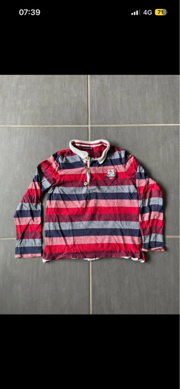 Polo manches longues garçon pull sweat col rouge multicolore motifs 9ans