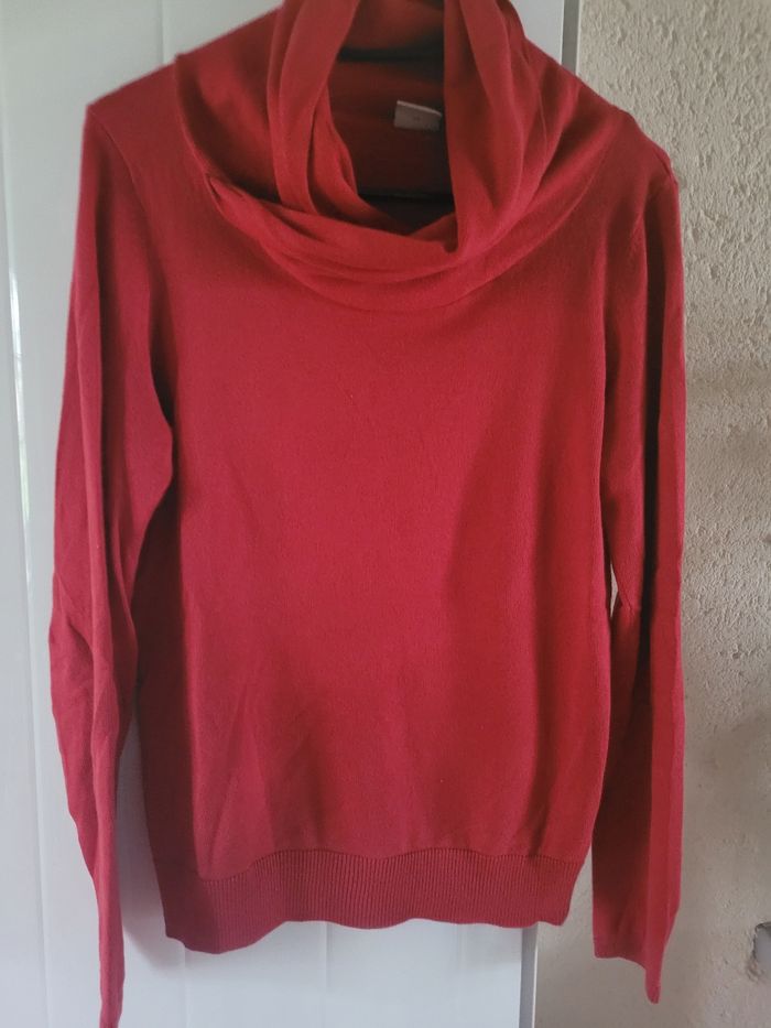 Pull rouge 100 % coton. Longueur 57 cm. Largeur épaule à épaule 38 cm.Esprit