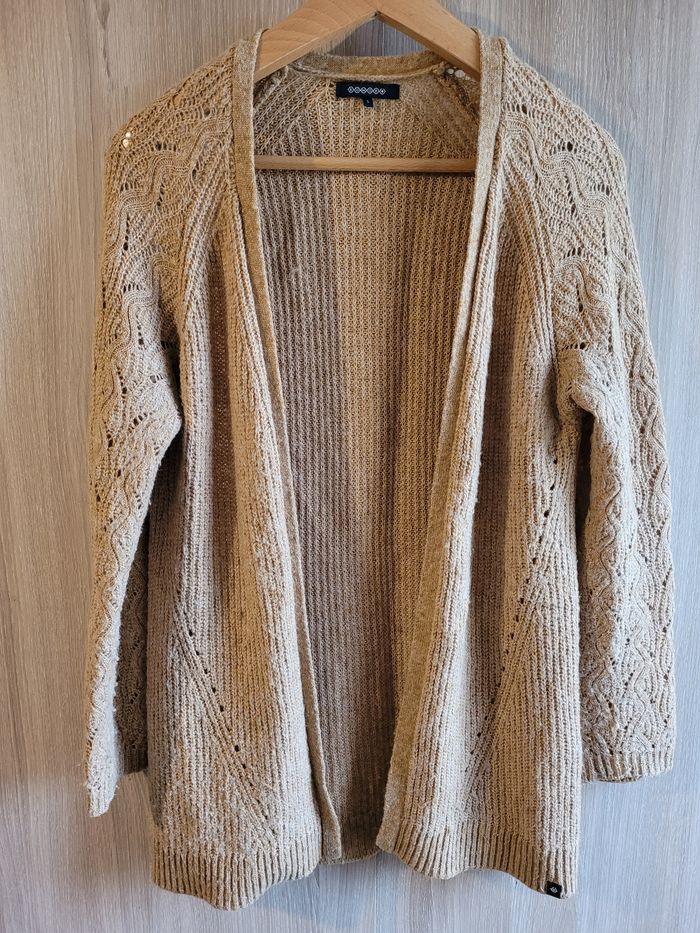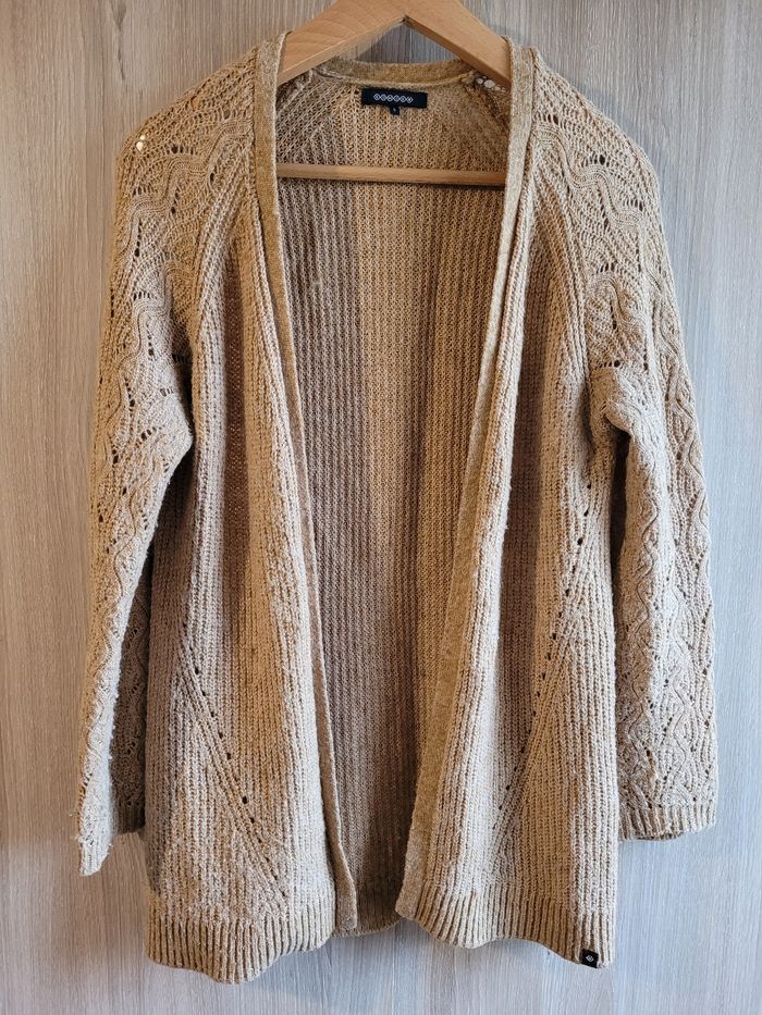 Gilet longueur 70 cm. Taille S. 53 % polyamide, 22 % acrylique et 14 % laine. Aspect un peu feutré Bonobo