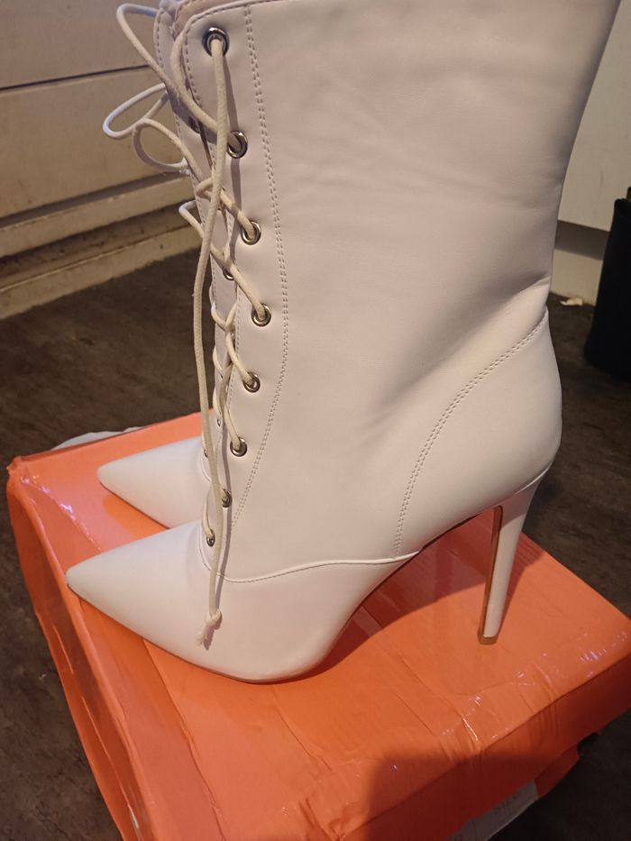 Botte talon aiguille haut avec fermeture sur le côté a lacets devant blanche marqué taille 43 convient plus à un 41/42 jamais porté