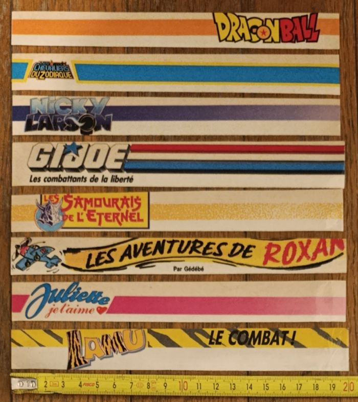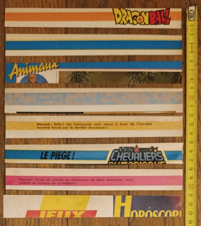 Lot de 8 anciens encarts Plastifiés (Peuvent être un peu gondolés et pas coupés extrêmement droits mais restent en bon état) Cf photos Anciens encarts des dessins animés Club Dorothée (Un peu comme des longs et fins marque pages) Mesures sur les photos Dragon ball 🐲 Les chevaliers du zodiaque Nicky larson Gijoe Les samouraïs de l'Éternel Les aventures de Roxan Juliette je t'aime Lamu D'autres anciennes publicités et articles vintage disponibles, N'hésitez pas à regarder mes autres annonces