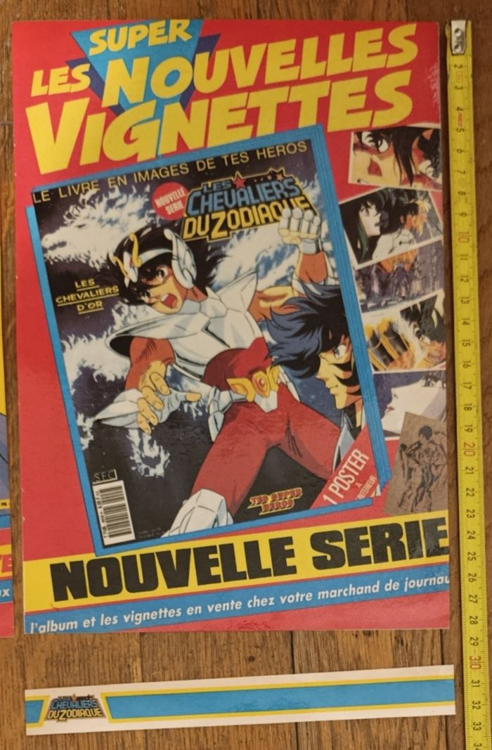 Lot 2 anciennes publicités plastifiées Les chevaliers du zodiaque 1990 vintage