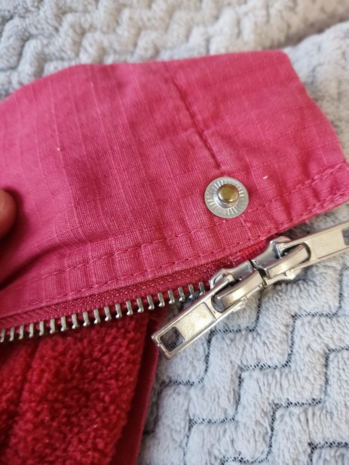 Je vends ce manteau rouge d'hiver de la marque Blancheporte. Il est doublé en polaire. Il a deux poches devant et se ferme avec fermeture éclair à double curseur et pressions .La doublure peut s'enlever l'été pour en faire un coupe vent. Et, la capuche peut également s'enlever l'été.