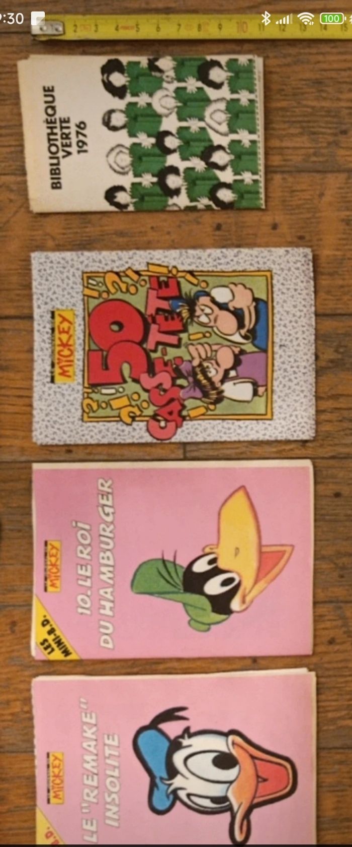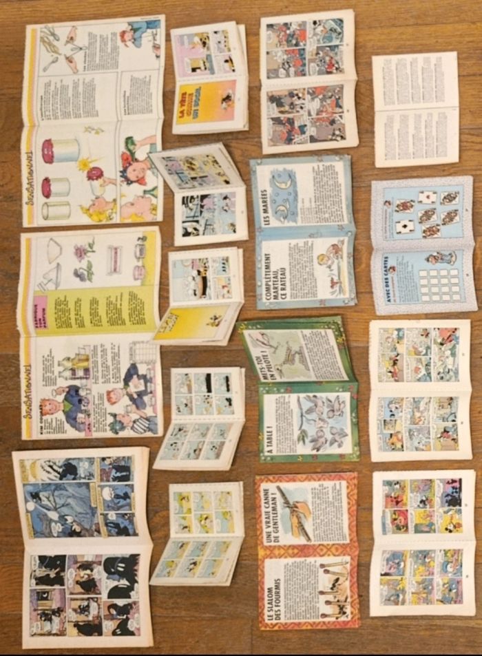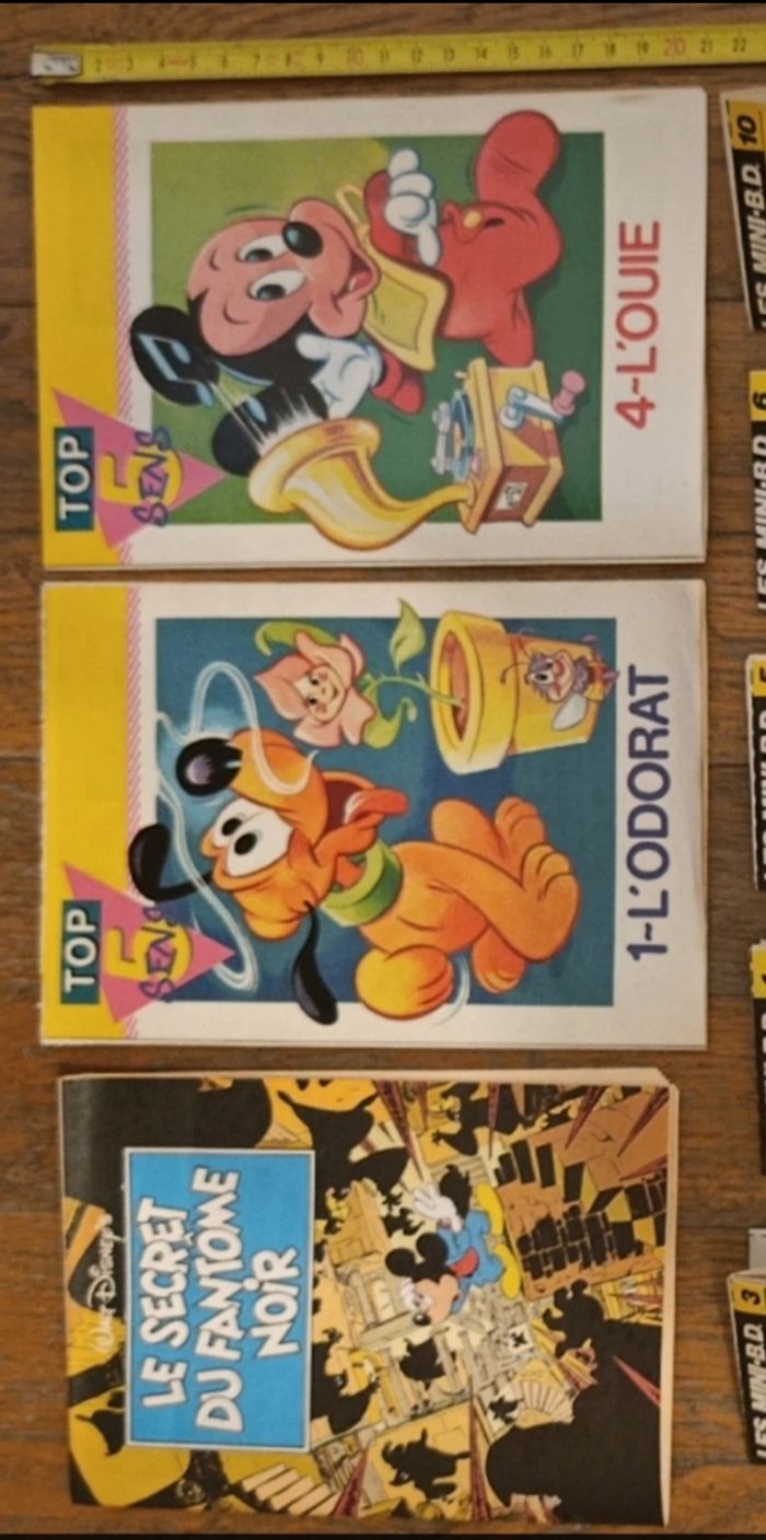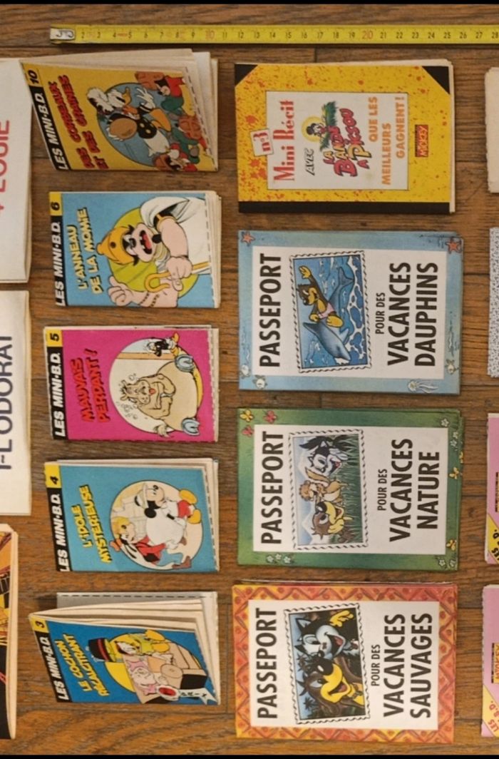 Lot de 16 mini livrets, bd, à monter Provenant d'anciens journaux de Mickey et de Pif Elles ont été pliées mais pour la plupart il reste à les couper. (Sur les 16, il y en a 5 qui ont déjà été coupées) Quelques traces d'usure: ⚠️ Mini bd n°6 : petite déchirure sur la dernière page mais dans l'ensemble bon état 16 mini livrets bd : - le secret du fantôme noir Mickey - l'odorat - l'ouïe - les mini bd 3 : le cochon récalcitrant - les mini bd 4 : l'idole mystérieuse - les mini bd 5 : mauvais perdant - les mini bd 6 : l'anneau de la momie - les mini bd 10 : des corbeaux et des graines - passeport pif : pour des vacances sauvages - passeport pif : pour des vacances nature - passeport pif : pour des vacances dauphins - mini récit 3 : la bande à Picsou - les mini bd 1 : le remake insolite - les mini bd 10 : le roi hamburger - 50 casse tête Les Déblok - bibliothèque verte 1976 D'autres articles vintage disponibles, N'hésitez pas à regarder mes autres annonces