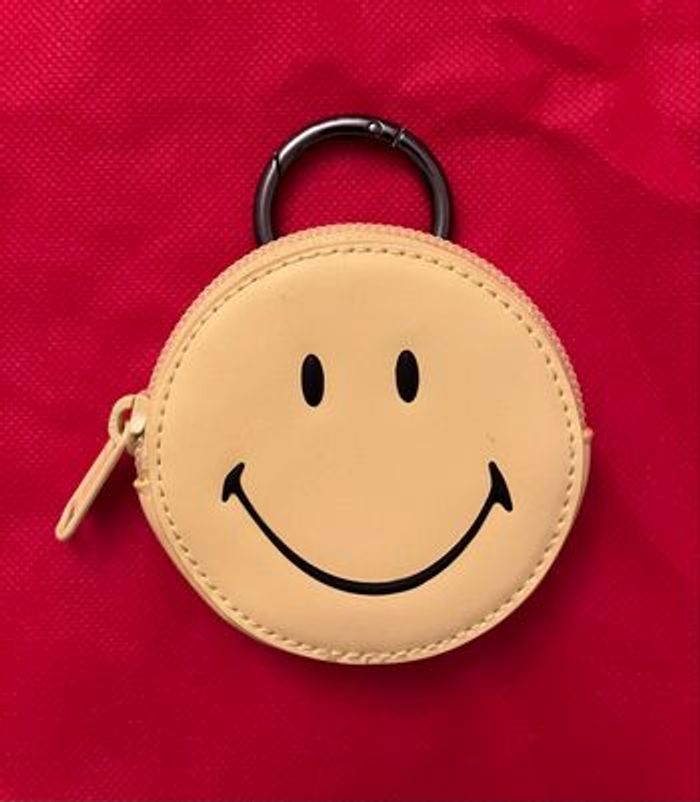 Porte clefs rond, petit porte monnaie Marque Cabaia, modèle Smiley Couleur jaune Neuf sans étiquette Édition limitée Non vendu seul sur le site
