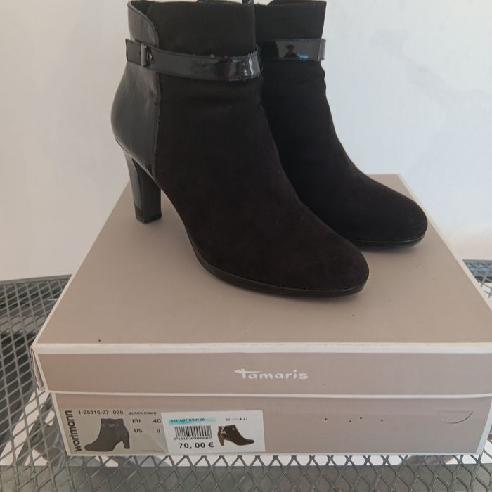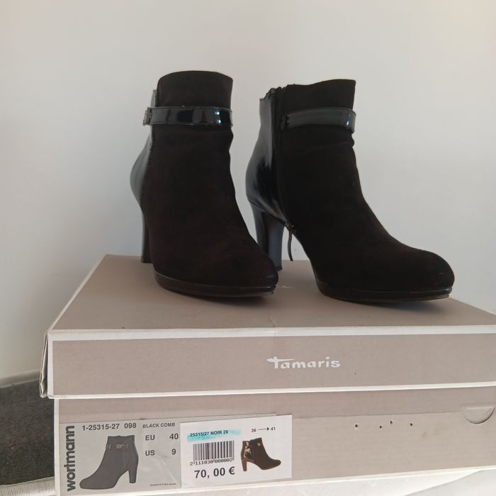 Bottines Tamaris en daim – Talon 8 cm – Comme neuves, pointure 40