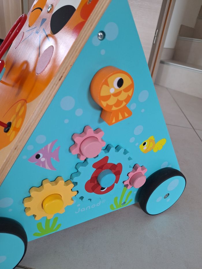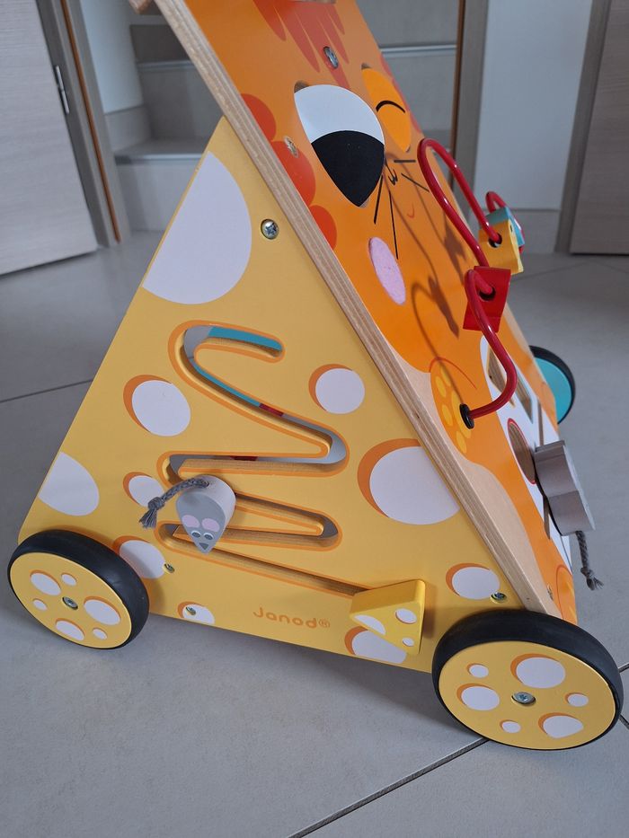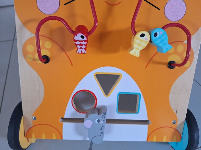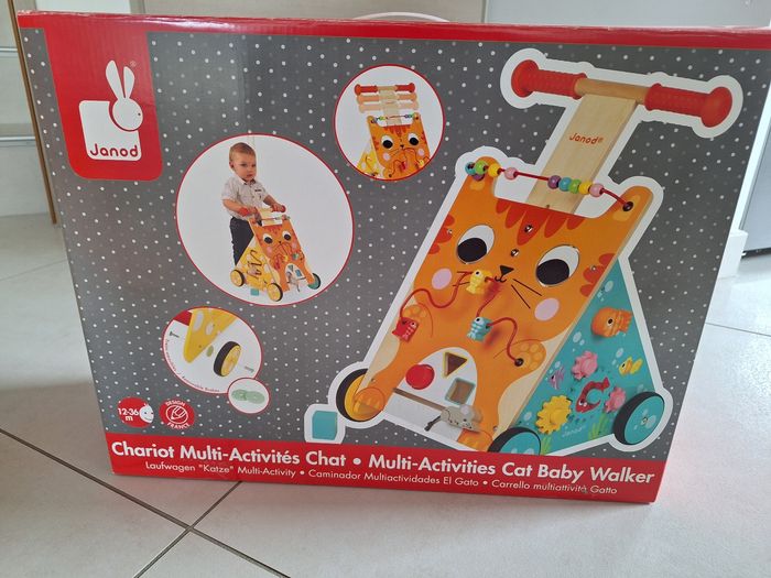 Chariot multi activité chat de marque Janod. Il est en bon état voir très bon état, quelques traces d usure mais vraiment minime. Il a été utilisé uniquement en intérieur. Boîte d emballage d origine avec. Notice de montage fournie.