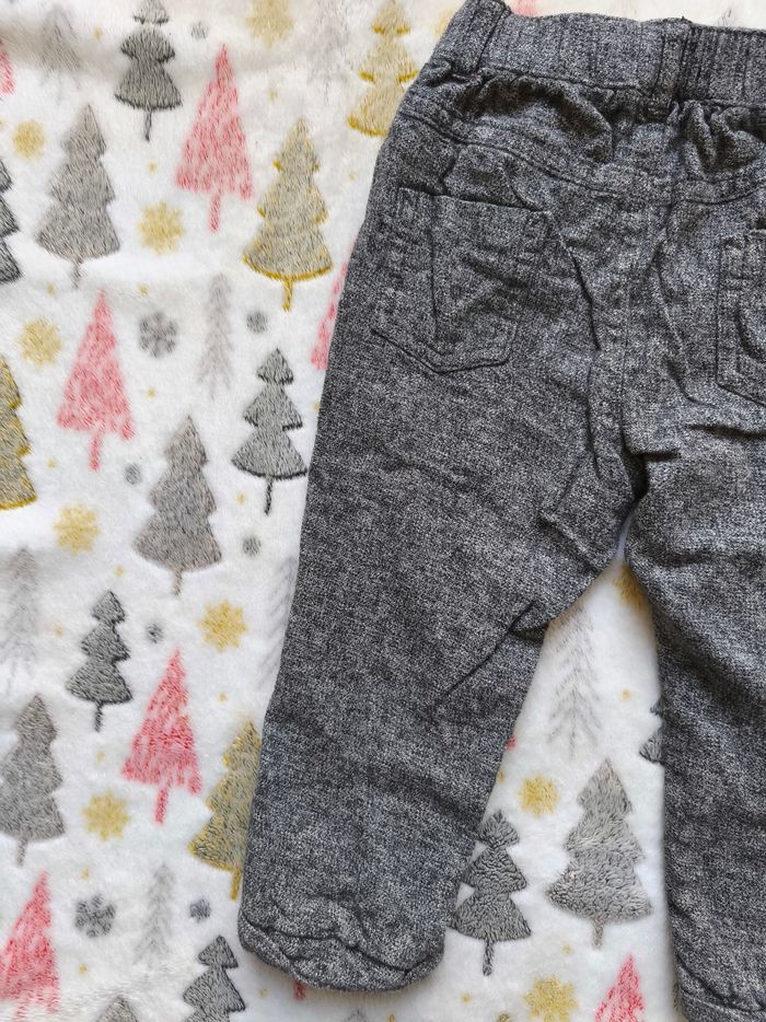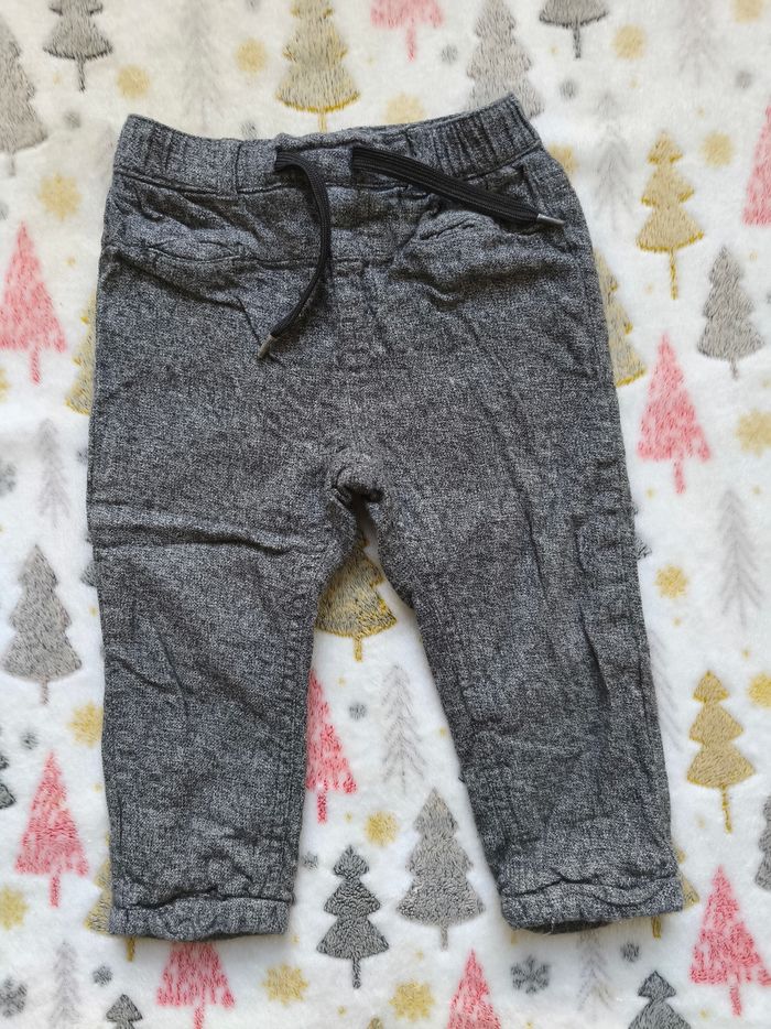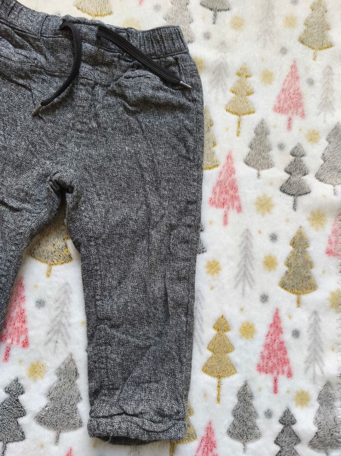 Pantalon gris doublé à l'intérieur. Assez chaud pour l'hiver. On peut le régler à la ceinture avec la ficelle. ✅️ Taille 24 mois ✅️ Marque : Kiabi ✅️ Très bon état ✅️ Matière : 100% coton ✅️ Couleurs : gris