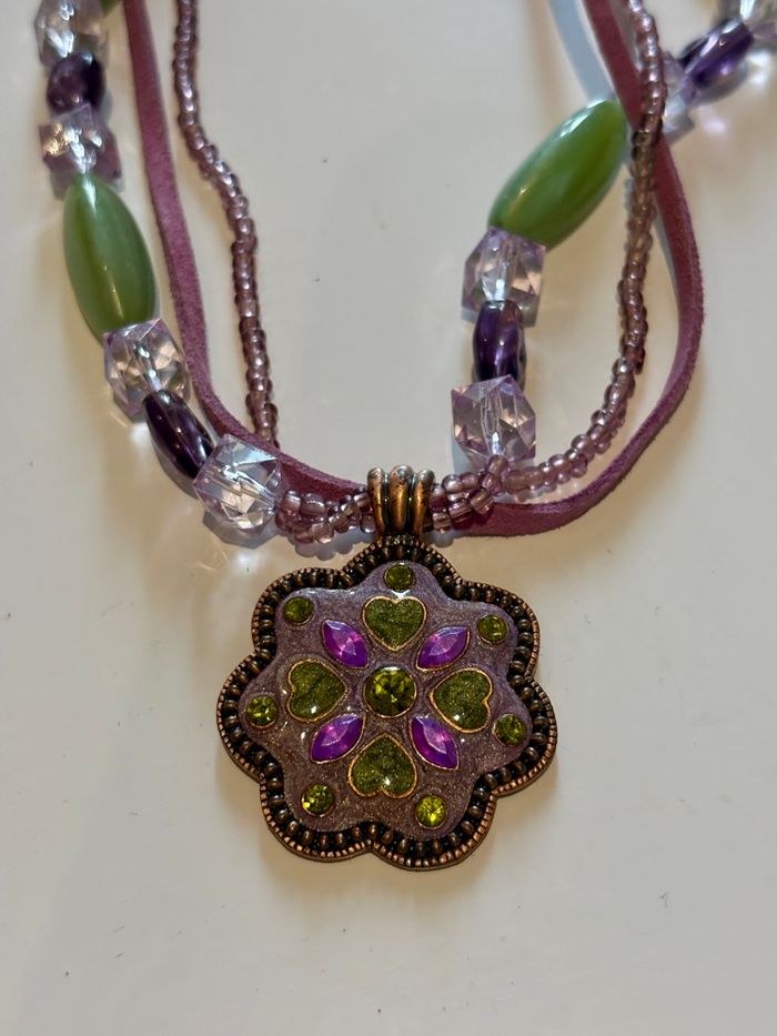 💍Types d’article : Collier ethnique avec pendentif fleuri et perles violettes & vertes