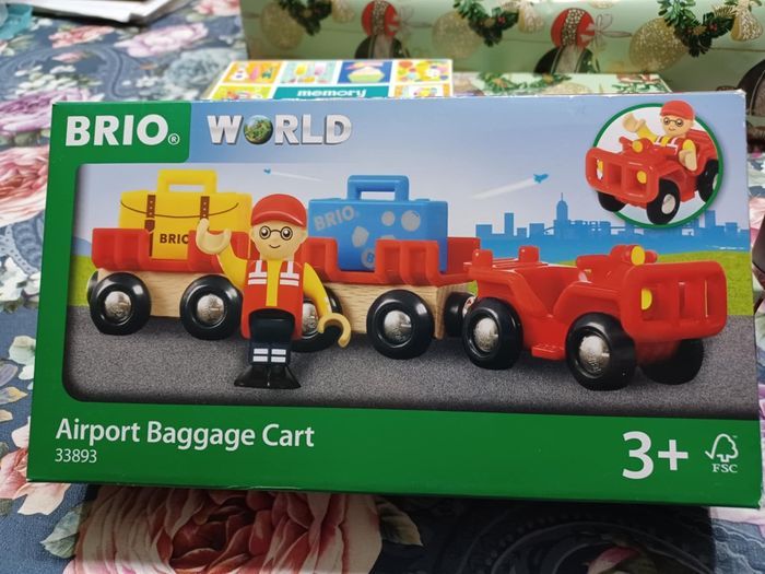 ACCESSOIRES TRAIN EN BOIS BRIO WORLD REF 33893 Grâce à son look parfaitement identifiable, vous ne pourrez pas passer à côté du véhicule de chargement des bagages qui circule dans l'aéroport, déplaçant les bagages de l'enregistrement jusqu'à la Soute de l'avion. Le véhicule de chargement des bagages Brio comprend un travailleur, un véhicule tout-terrain à quatre roues et deux wagons prévus pour transporter chacun un bagage. C'est un jouet idéal pour compléter le thème aéroport au sein du Brio