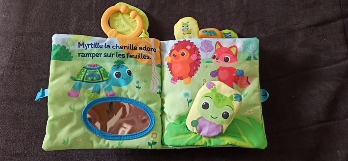 Premier livre de bébé, souple. Avec musique et petite marionnette sur certaines pages
