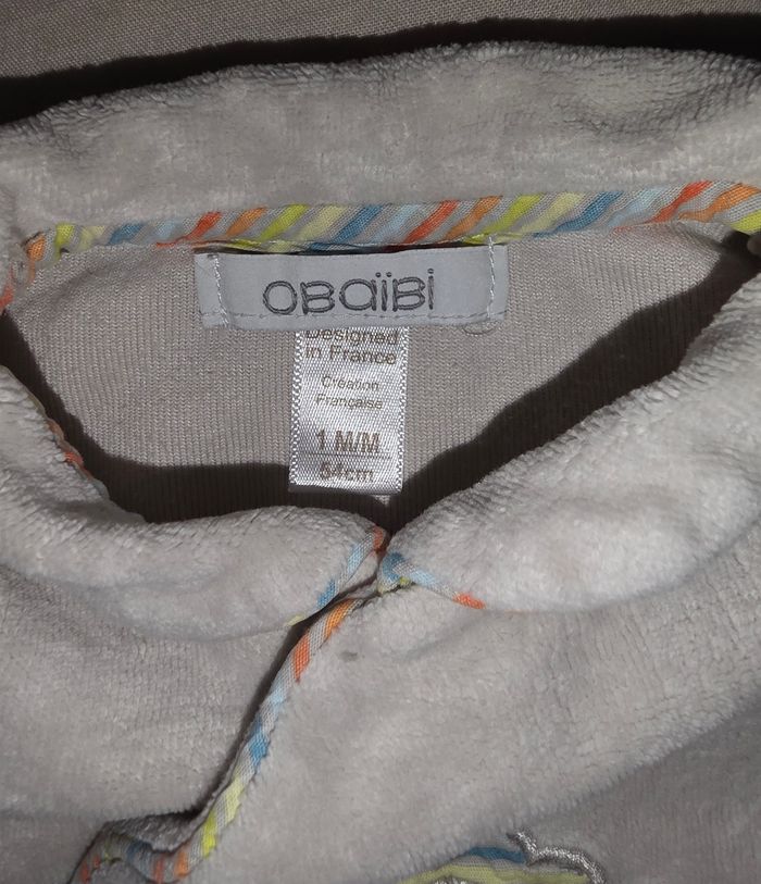 Pyjama velours une pièce, couleur gris a motifs colorés. Marque obaïbi en 1 mois. Remises sur lots activé ✅️ De plus, moins de frais de livraison 🪙📦 Envois rapide et soigné ! 🚚