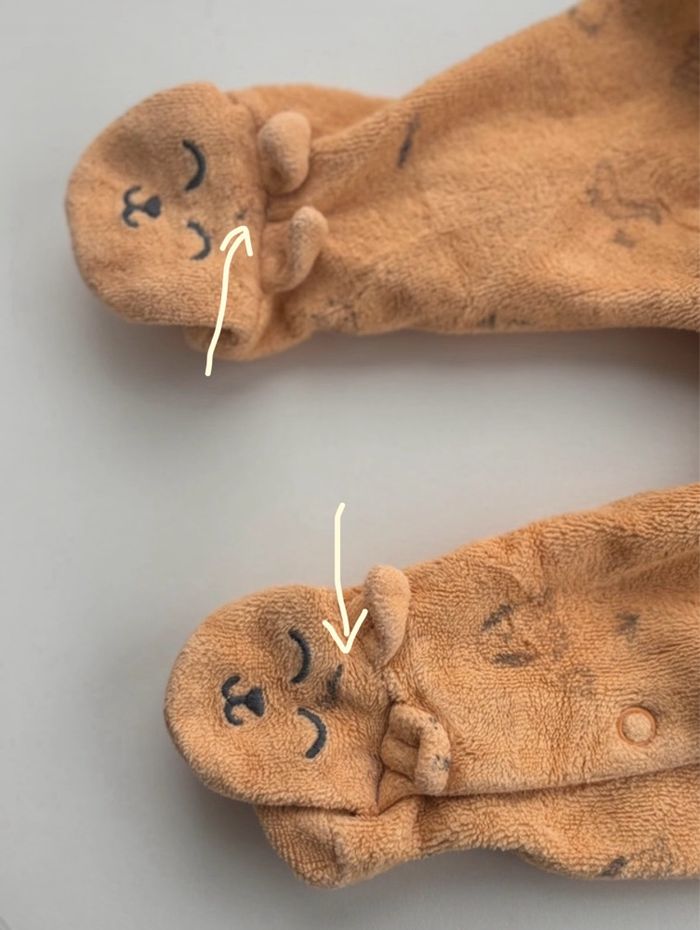 Pour le 4eme, les motifs du pyjama jaune on été abîmés au niveau des pieds.