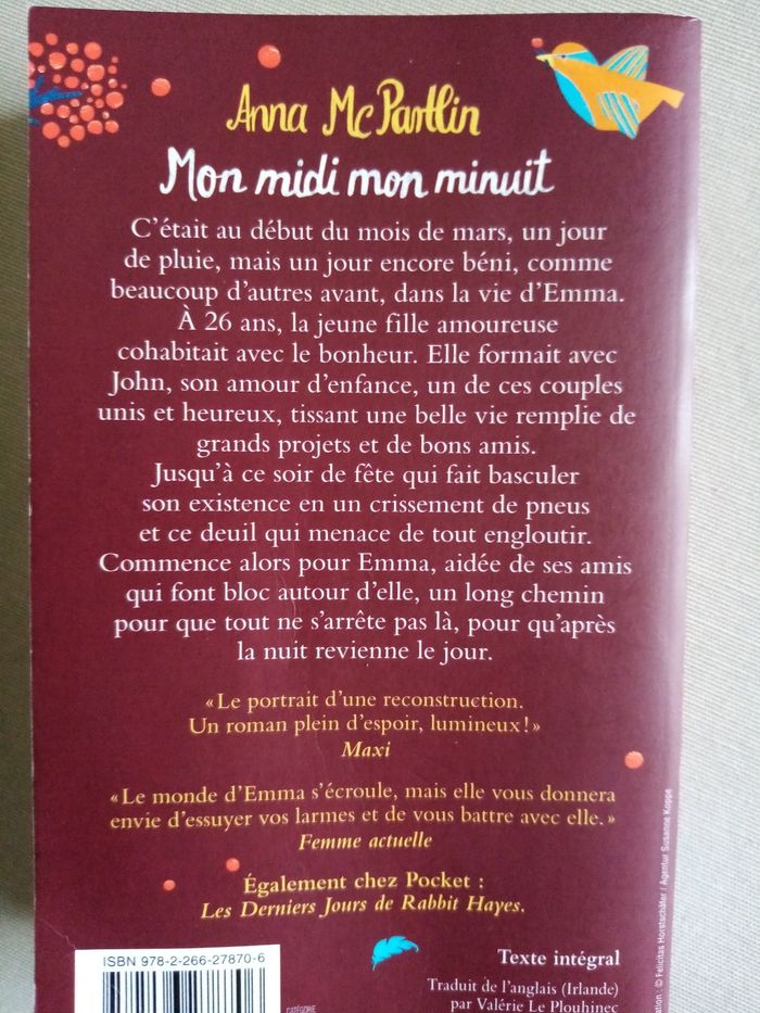 Mon midi mon minuit : Anna MCPARTLIN. Editions Le cherche midi, poche, 2017/2018.