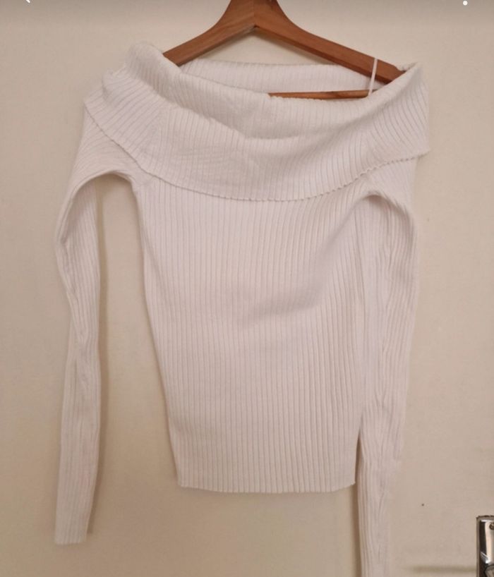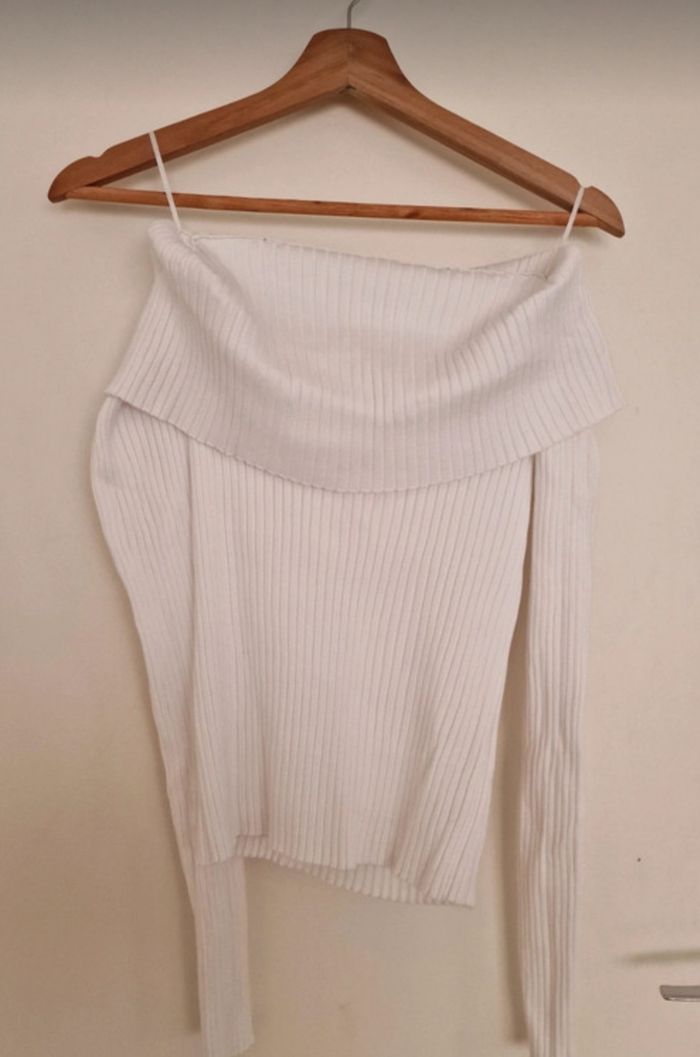 Haut blanc epais manche longue épaules dénudées
