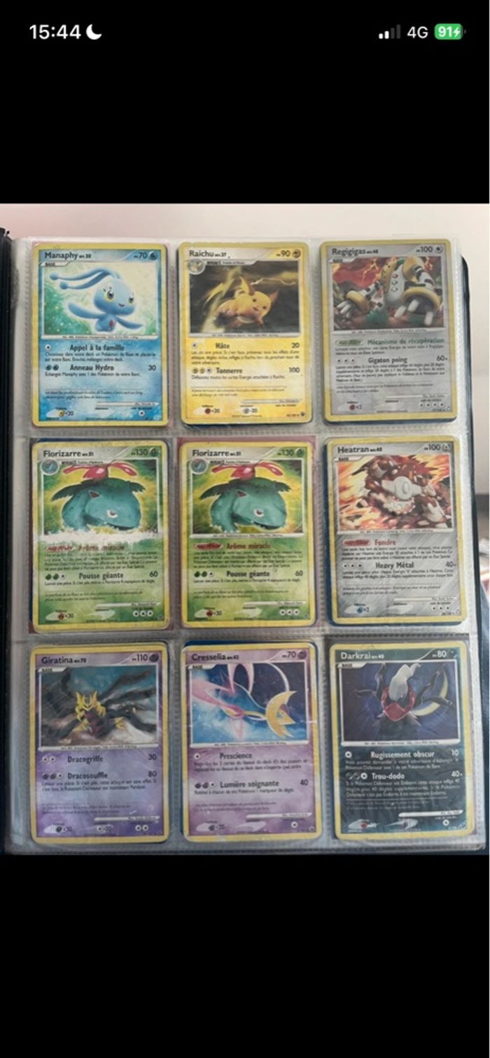 ⚠️ Ne pas acheter l’annonce à 1€ ⚠️ Je vends un lot de cartes Pokémon des éditions Diamant perle et platine en holographique et reverse. Les états varient, entre très bon état / excellent jusque Poor. Je vends en lot ou à l’unité, elles ont chacune des prix. N’hésitez pas à me proposer un prix SÉRIEUX pour tout le lot.