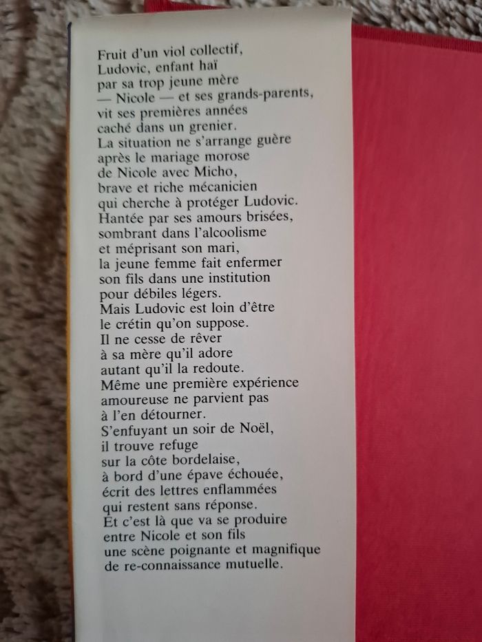 Fruit d'une alliance barbare et d'un grand amour déçu, Ludovic, enfant haï par sa trop jeune mère,Nicole et ses grands-parents, vit ses premières années caché dans un grenier. La situation ne s'arrange guère après le mariage de Nicole avec Micho, brave et riche mécanicien qui cherche à protéger Ludovic. Hantée par ses amours brisées, sombrant dans l'alcoolisme et méprisant son mari, la jeune femme fait enfermer son fils dans une institution pour débiles légers. Mais Ludovic n'est pas l'arriéré qu'on veut faire de lui. Il ne cesse de rêver à sa mère qu'il adore et qu'il redoute. Même une première expérience amoureuse ne parvient pas à l'en détourner. Son seul but, son unique lumière : la retrouver. S'enfuyant un soir de Noël, il trouve refuge sur la côte bordelaise, à bord d'une épave échouée, écrit chez lui des lettres enflammées qui restent sans réponse. Et c'est là-bas, sur le bateau dont il a fait sa maison, que va se produire entre Nicole et son fils une scène poignante de re-connaissance mutuelle, qui est aussi le dernier épisode de leurs noces barbares..