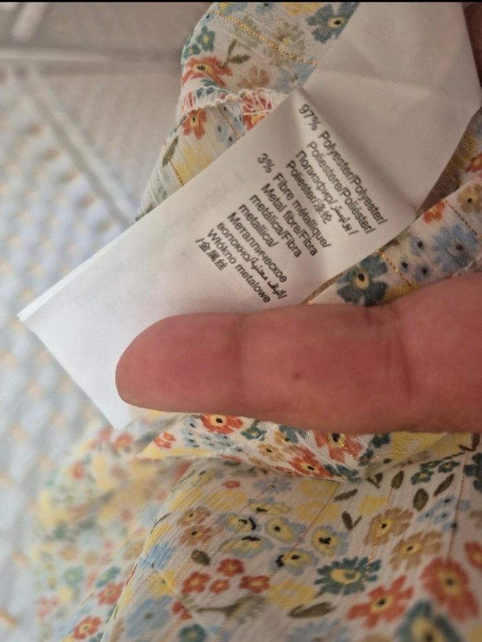 * Couleur : Jaune et écru avec motifs fleuris multicolores