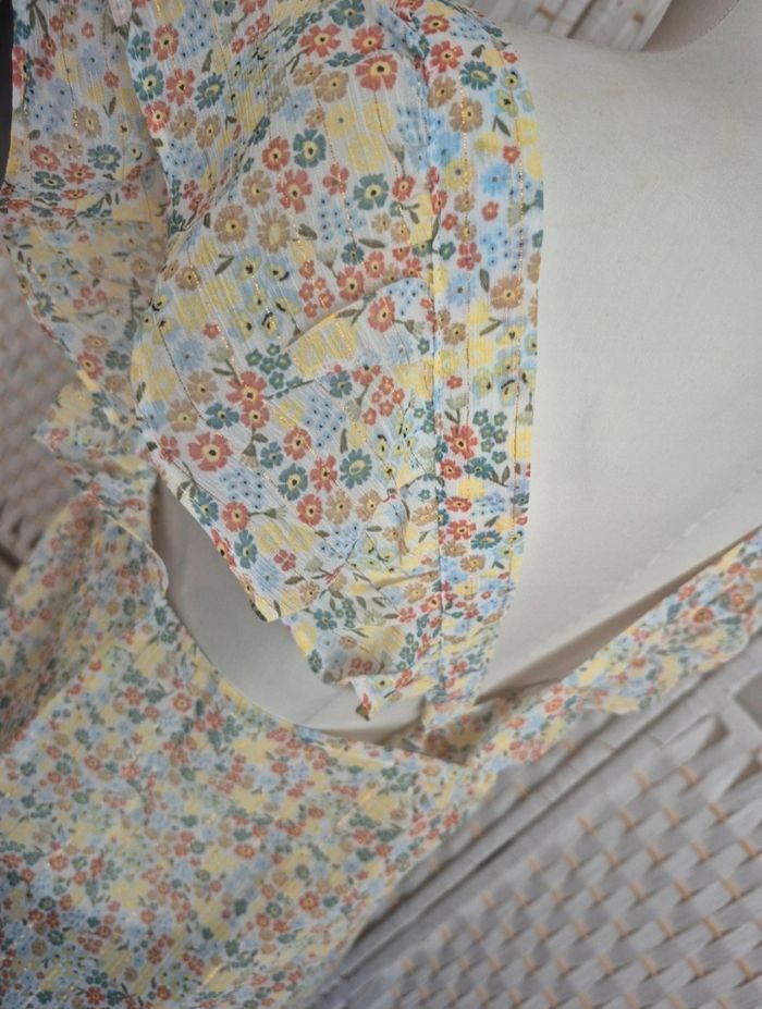 Hello les filles ! Envie d'une pièce qui respire la joie et la bonne humeur ? Ce top Bizzbee est une vraie pépite ! Avec ses adorables petits motifs floraux dans des tons jaune, écru et pastel, il apporte une touche de fraîcheur instantanée à n'importe quelle tenue.