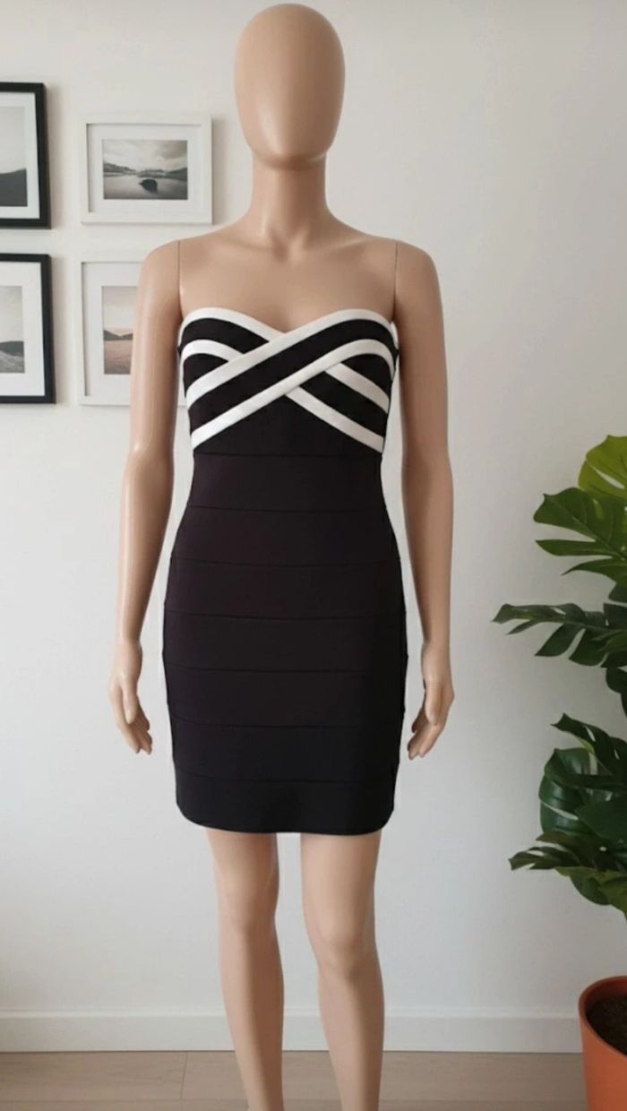 🖤 Robe de Soirée Bandeau Noir et Blanc Style Bandage - Taille M 🤍