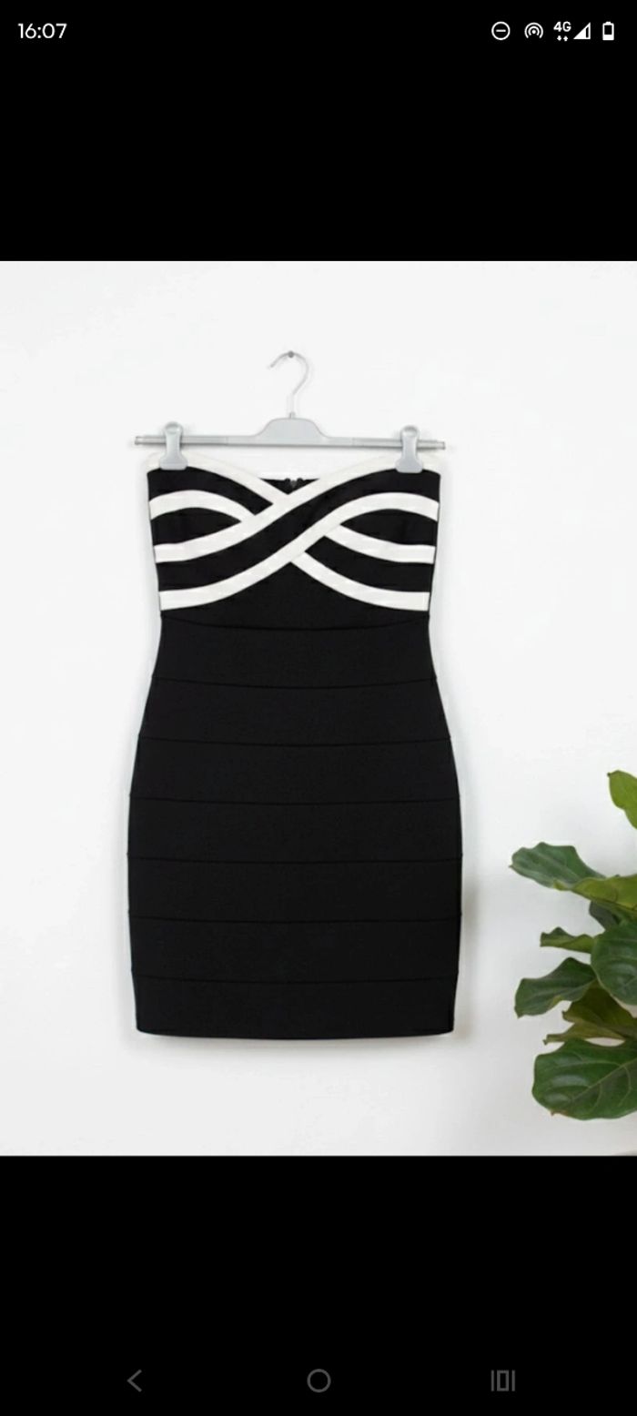 🖤 Robe de Soirée Bandeau Noir et Blanc Style Bandage - Taille M 🤍 - photo numéro 4
