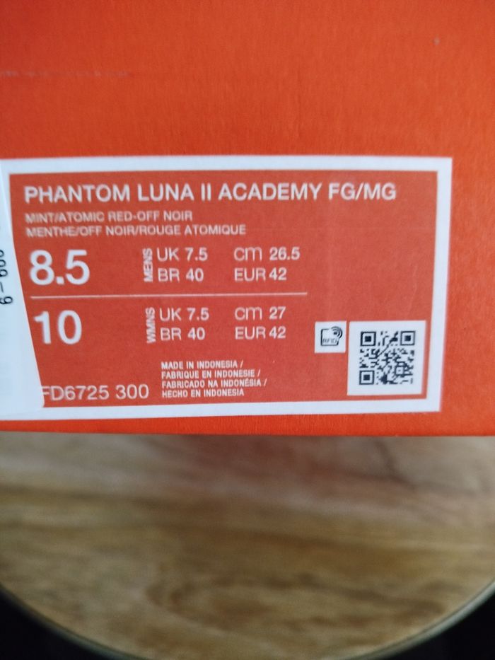 Je vends ces crampons de football - Marque : Nike - Modèle : Phantom luna II ACADEMY - Taille : 42 - Couleur : Blanc / Bleu - Activité/Sport : Football - État Neuf Boîte sans couvercle N'hésitez pas à me contacter pour plus d'informations.