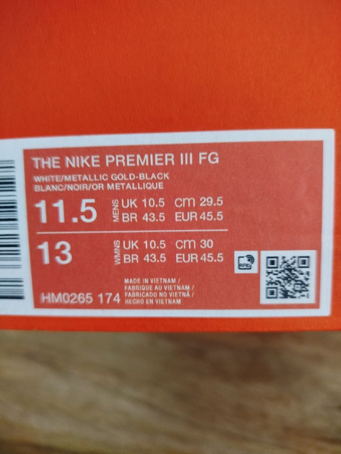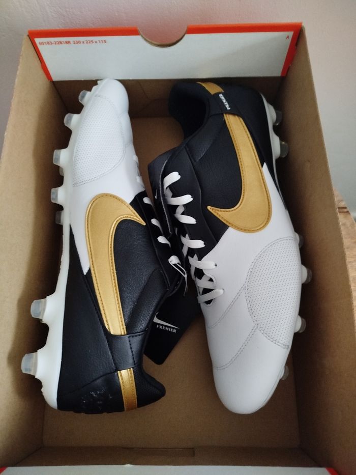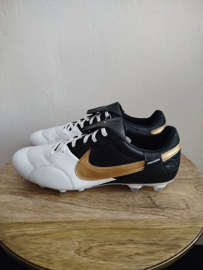 Je vends ces crampons de football - Marque : Nike - Modèle : THE NIKE PREMIER III FG - Taille : 45,5 - Couleur : Noir blanc doré - Activité/Sport : Football - État Neuf Boîte sans couvercle N'hésitez pas à me contacter pour plus d'informations.
