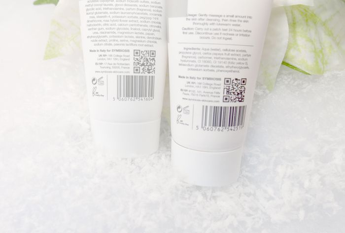 Symbiosis Exfoliant doux [Ha + Pg] [Acide Hyaluronique + Extrait Glycolique De Papaye] Cryo-Exfoliant Visage Équilibrant Texture Sorbet Cet exfoliant délicieusement parfumé est enrichi d'ingrédients révolutionnaires qui aide la peau à paraître plus lisse et plus douce avec un teint intensément hydraté et plus lumineux. D'une texture luxueuse, il glisse sur votre peau, et représente un bel ajout à votre routine de soins. L'acide hyaluronique pénètre profondément votre peau, l'hydrate intensément et aide à réduire l'apparence des imperfections, des ridules, des rides et du relâchement cutané. Considéré comme un exfoliant naturel dont les biens faits permettent d’éliminer les cellules mortes de la peau, la papaye vise également à atténuer l'hyperpigmentation causée par les éruptions cutanées. La papaye permet aussi de réduire l’apparence de cicatrices. NEUF_ Flacon souple _ Operculé _ 50mL et Symbiosis Exfoliant anti- imperfections Rajeunissant Confort Visage à la Rose [R + AHA] Cet exfoliant vise à éliminer les impuretés tout en atténuant les cellules mortes de la peau. Parallèlement, les principes actifs infusés accélèrent le processus de renouvellement naturel de la peau pour lutter contre les signes du vieillissement. L'Acide Glycolique vise à stimuler la fermeté de la peau, lisser les rides et ridules, traiter les points noirs, la peau terne et grasse pour une apparence fraiche. De plus, la Rose vise à éliminer les cellules mortes et les impuretés pour révéler une peau douce, lumineuse et jeune. Cet actif réfléchit la lumière, stimule l'éclat et adoucit les imperfections. Benefices - Contribue à exfolier délicatement. - Aide à Lisser les rides et ridules. - Vide à Corriger la peau grasse et matifie la peau. - Contribue à Illuminer la peau, adoucit les imperfections et renforce l'éclat. - Contribue à Révéler une peau douce, fraîche et jeune. NEUF_ Flacon souple _ Operculé _ 50mL